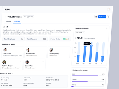 14. hire.io - Company Overview ai analytics career portal ux company culture dashboard company insights ui dashboard data employer overview interface hiring transparency design insights interactive company insights job platform dashboard job portal company profile jobportal minimal product recruitment analytics ui saas uiux for job seekers webapp
