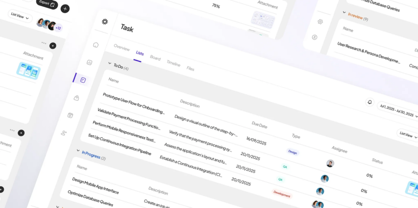 Narima Digital’s concept stands out for simplifying task management without removing structure. Instead of relying only on kanban boards, the list view introduces a cleaner way to scan, prioritize, and update tasks in one place.